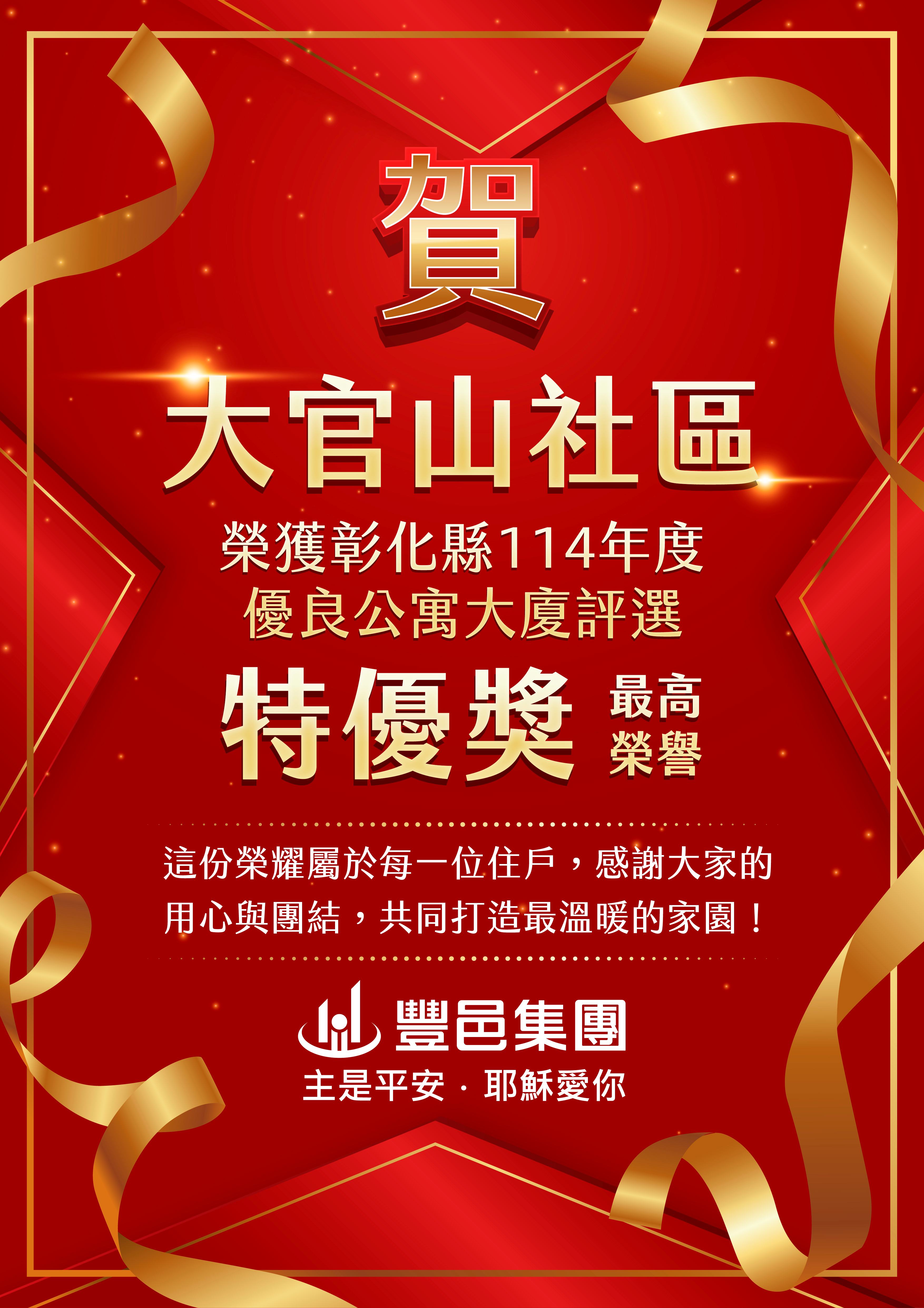 大官山社區 榮獲彰化縣114年度優良公寓大廈評選 特優獎
